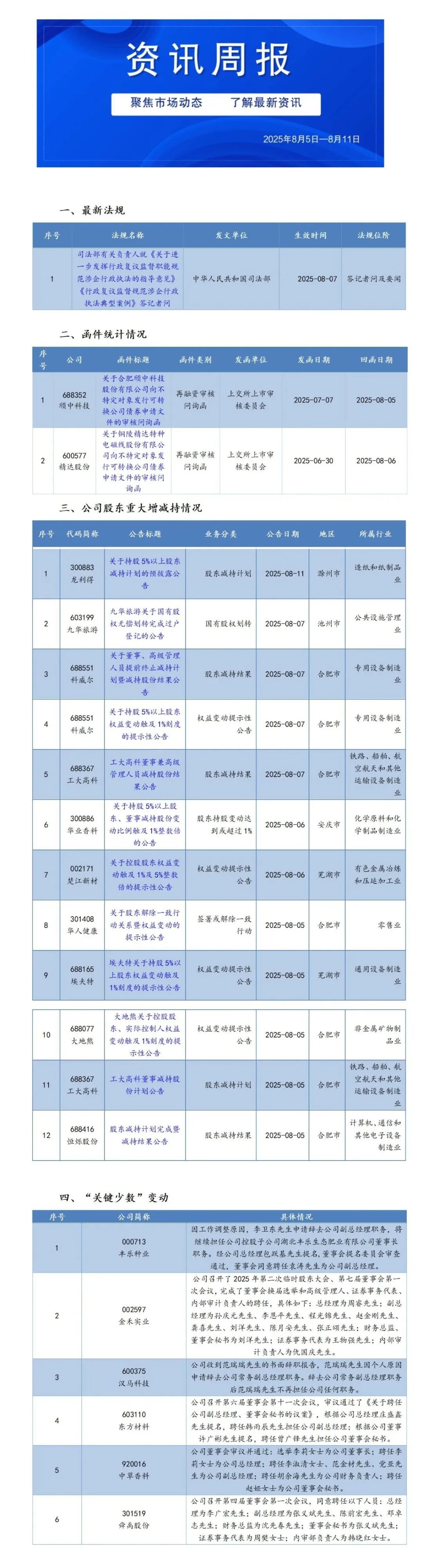 传金所 安徽上市公司资讯周报(8月5日-8月11日)